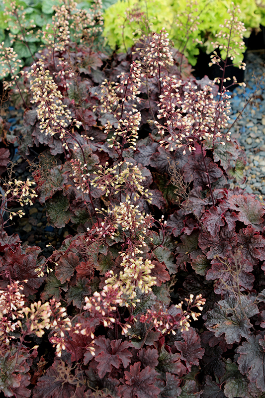 An attractive dark leaf variety with emerging red leaves that darken to brick red in summer; dainty white flower spikes stand out well; amazing contrast to other plants;great versatility; keep soil moist in heat of summer
