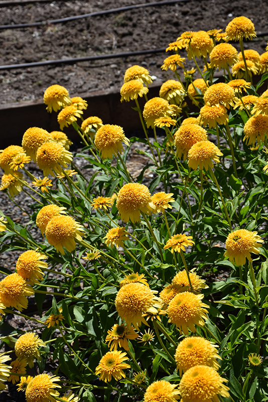 This stunning echinacea produces outstanding yellow, fully double flowers; a perfect choice for planting in groups, along border edges, or in containers; flowers come early and keep coming until frost; attracts pollinators